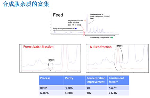 ? ? ??N-Rich工藝是微量物質的富集過程,比如將產品的相關雜質選擇性地富集在一個循環(huán)的層析過程中,待富集至目標量,再進行洗脫回收。該方法特別適用于分離與產品有關的雜質,如異構體和聚集體,并同時用于發(fā)現(xiàn)研究。