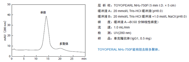 ????陰離子交換填料在抗體的純化工藝中一般通過(guò)流穿模式來(lái)去除樣品中的宿主細(xì)胞蛋白、核酸、內(nèi)毒素、多聚體等雜質(zhì)。? TOYOPEARL GigaCap Q-650M、TOYOPEARL Q-600C AR、TOYOPEARL NH2 -750F 等,均是高載量型的優(yōu)異層析填料。