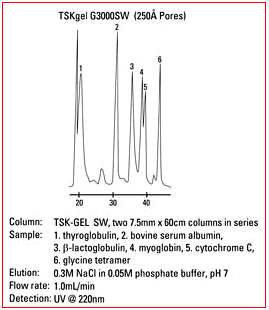 1. TSKgel SW-型填料由含二醇基官能團(tuán)的剛性球形硅膠顆粒組成。