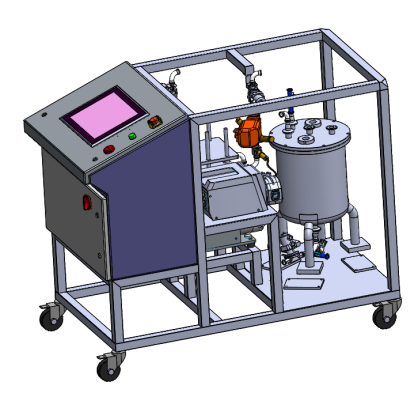 ? ?QuikSep AF中試型全自動超濾系統(tǒng)是采用衛(wèi)生級隔膜泵或作為循環(huán)輸液單元,在泵后、膜包濾過端和回流端分別配壓力傳感器,配合回流端的氣動比例調(diào)節(jié)閥實現(xiàn)恒定跨膜壓TMP,根據(jù)客戶工藝需要可選配在線流量計、UV、電導(dǎo)、pH,集成不銹鋼衛(wèi)生補液罐,罐體帶稱重、攪拌、噴淋頭在位清洗,配合蠕動泵可現(xiàn)實自動補液功能。